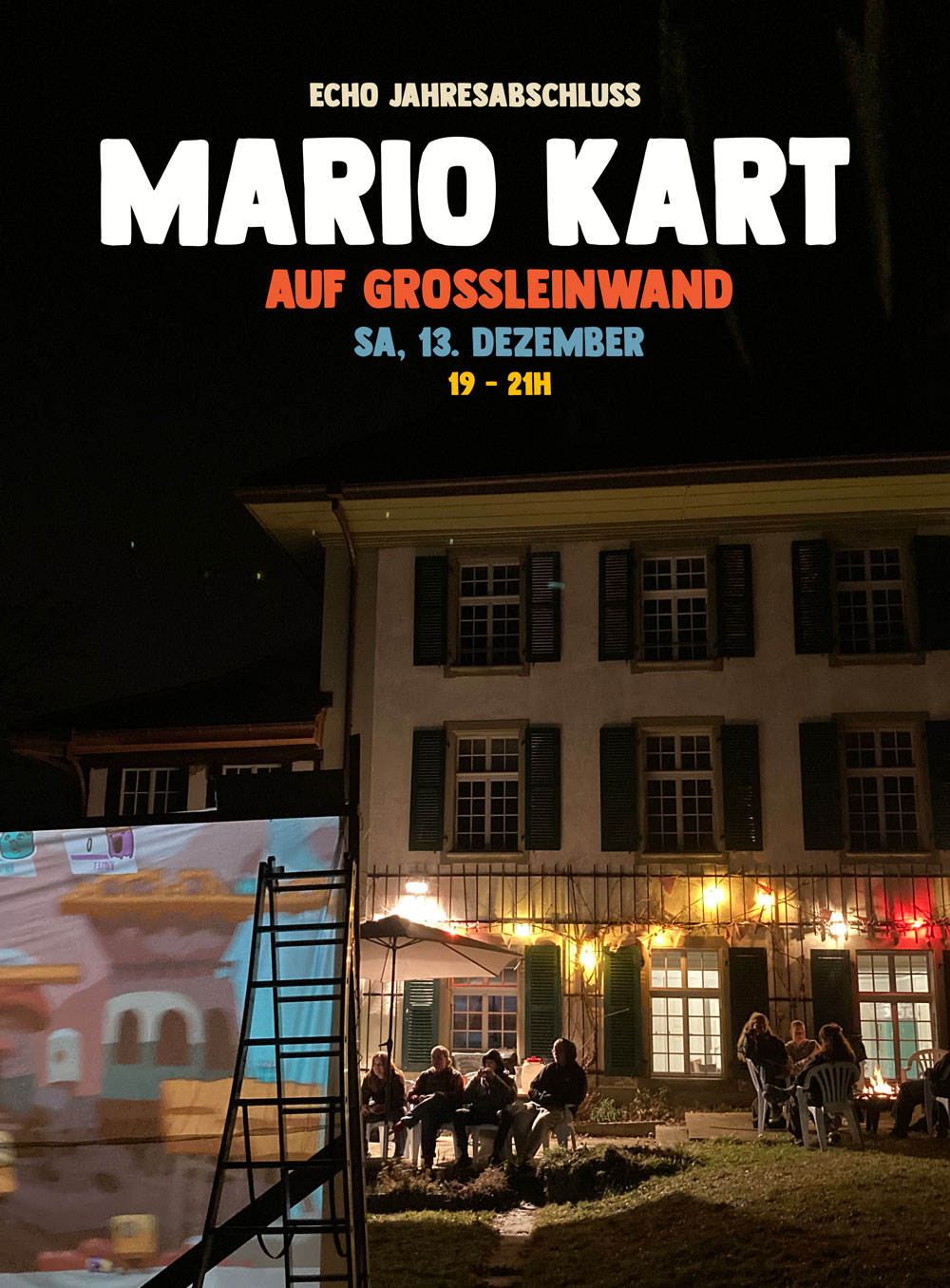 Gemeinsam lassen wir das Echo-Jahr mit Spiel, Spass und einer Prise Wettbewerb ausklingen! Wir laden dich ein zum gemütlichen Mario Kart Cup auf Grossleinwand – zum Abschluss eines ereignisreichen Echo-Jahres.