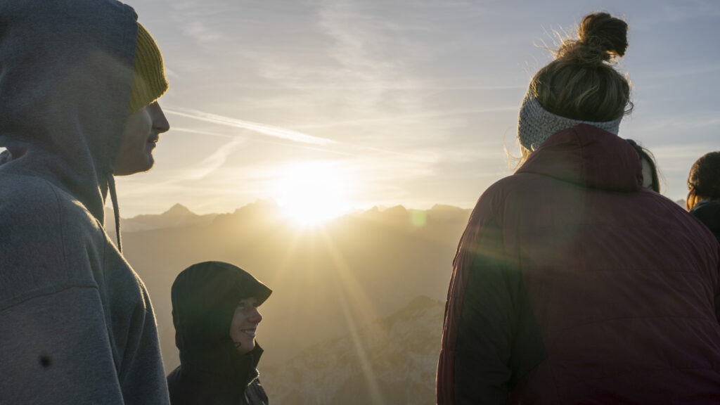 Das Zusammensein geniessen, mal abseits vom Trubel. Gemeinsam entscheiden wir in der «Alphütten-Runde» wie wir den Tag gestalten und lassen den Blick in die Weite schweifen…